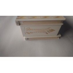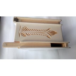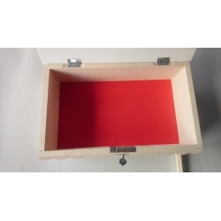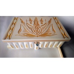 Тази кутия е изцяло от дърво (най-често клен или бук) и е изцяло ръчно изработена и ръчно издълбана от талантлив ръчен майстор. Лакиран е, за да има лъскав, гладък и приятен вид и за дълготрайна употреба.