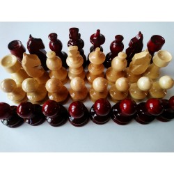 Шахматните фигури са от лесково дърво. Всички те имат 2,4 cm диаметър в основата. Царят е висок 5,7 см. Те са лакирани, за да имат блестящ, ярък и гладък аспект!