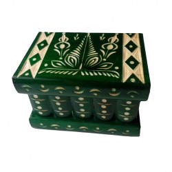 This box is  entirely from wood (most often maple or beech wood ) , and entirely handmade and handcarved by a talented handcrafter. It is lacquered for having a shiny , smooth and nice aspect, and for a long –lasting use.