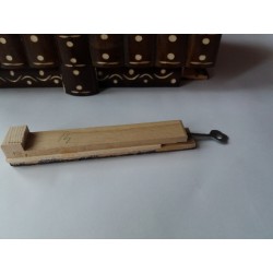 Now you can see that piece of the side of the box, which  you have to slide towards you, to take it out. You slide it from the middle (not from the edge of the box ) You can see on the picture that the cut is not quite at the edge of the secret box.