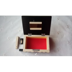 Esta caja es enteramente de madera (más a menudo de madera de arce o haya), y totalmente hecha a mano y tallada a mano por un artesano talentoso. Está lacado por tener un aspecto brillante, liso y agradable, y por un uso prolongado.