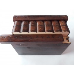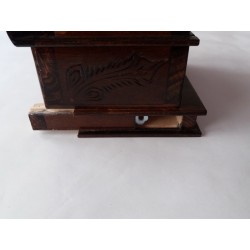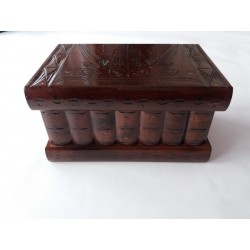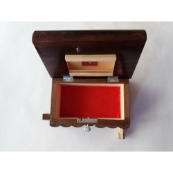 Esta caja es enteramente de madera (más a menudo de madera de arce o haya), y totalmente hecha a mano y tallada a mano por un artesano talentoso. Está lacado por tener un aspecto brillante, liso y agradable, y por un uso prolongado.