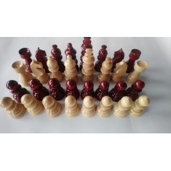 Niiden kaikkien pohjan halkaisija on 3,2 cm. Sotilas on 5,6 cm ja kuningas 9,5 cm pitkä. Ne on lakattu kiiltävän, kirkkaan ja sileän ulkonäön vuoksi!