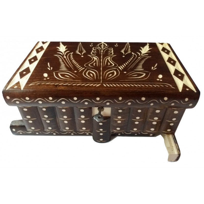 Tämä laatikko on kokonaan puusta (useimmiten vaahtera tai pyökki), ja se on kokonaan käsintehty ja käsityö lahjakkaalla käsikirjoittajalla. Se on lakattu, jolla on kiiltävä, sileä ja mukava näkökulma, ja pitkäikäiseen käyttöön.