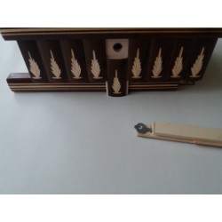 Mutta ... missä on avaimenreikä ?! Siinä missä kaikki laatikot avautuvat, joissa kaikilla on lukko, nyt se on peitetty yhdellä elementillä, jotka on veistetty kuin lehtiä tai joissa on joitain pisteitä. Liukastat keskeltä heistä (keskellä niitä 5,7 tai 9 asioita riippuen laatikon koosta) ja siellä on avainreikä.