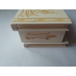 Tämä laatikko on kokonaan puusta (useimmiten vaahtera tai pyökki), ja se on kokonaan käsintehty ja käsityö lahjakkaalla käsikirjoittajalla. Se on lakattu, jolla on kiiltävä, sileä ja mukava näkökulma, ja pitkäikäiseen käyttöön.