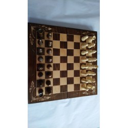 Ces pièces d'échecs faites main et sculptées à la main ont un design classique! Le prix est avec l'échiquier! Les pièces d'échecs ne sont pas pondérées !!! Le prix est avec une boîte d'échecs en bois de hêtre faite main, qui a la taille de 50x50cm, et la taille carrée 5 x5 cm. Le chessbox est sans enveloppe à l'intérieur! Les figures d'échecs sont en bois de noisetier et handpsindled, et ils sont de couleur noisette. Ils ont tous un diamètre de 3,2 à la base. Le pion mesure 5,8 cm et le roi mesure 9,2 cm. Ils sont laqués pour avoir un aspect brillant, brillant et lisse! L'échiquier est en bois de hêtre, et a une fleur traditionnelle très spéciale dans les 4 coins !!! Cela le rend si spécial et différent! Pour le rendre plus intéressant et précieux, nous avons également fait le jeu de backgammon à l'intérieur des échecs. Beaucoup de gens aiment le backgammon. Qui n'est pas si bon aux échecs, c'est certainement super au backgammon! Pour encore plus de plaisir, si vous tournez le chessbox de l'autre côté, au lieu des échecs, avec les pièces de backgammon, vous pouvez jouer aux dames ou aux dames! Tout le monde dans la famille peut jouer ce qu'ils aiment :) Fondamentalement, vous aurez 3 jeux en 1, tous faits à la main, tous à partir du bois, directement du producteur! Et, surtout, c'est à un prix très raisonnable !!! Il est fait à la main, sculpté à la main, à bas prix, grand, beau, il est en bois, 6 raisons immédiates pour l'acheter !!! Cet article est entièrement fait à la main, alors s'il vous plaît accepter les écarts mineurs.