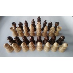 Le prix est pour un ensemble de pièces d'échecs, 16 pièces en bois marron et 16 pièces en bois laqué naturel (2x16 pièces).