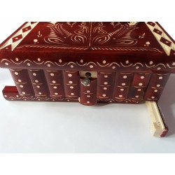Cette boîte est entièrement en bois (le plus souvent en bois d'érable ou de hêtre), entièrement faite à la main et sculptée à la main par un artisan talentueux. Il est laqué pour avoir un aspect brillant, lisse et agréable, et pour une utilisation longue durée.