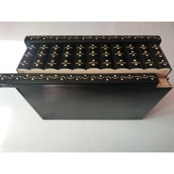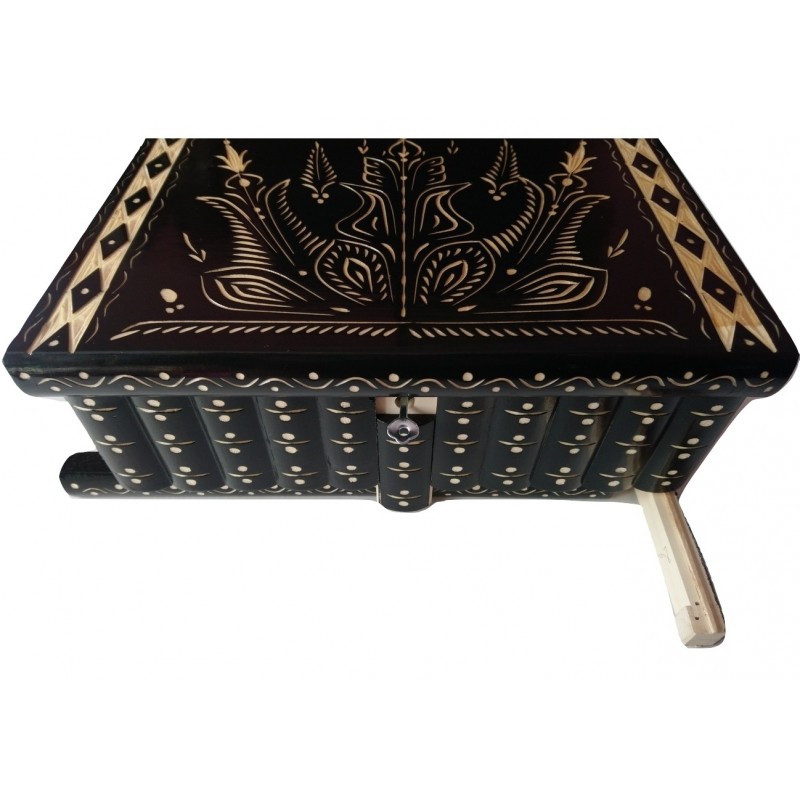 Ez a doboz teljes egészében fából (leggyakrabban juhar- vagy bükkfából) készült, és teljes egészében kézzel készített és egy tehetséges kézműves faragta. Lakkozott a fényes, sima és szép megjelenés érdekében, valamint a hosszan tartó használat érdekében.