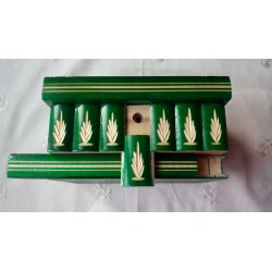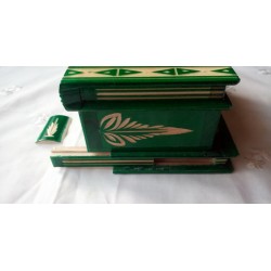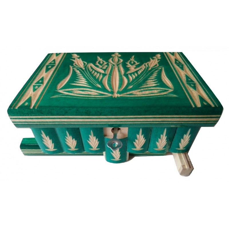 Fa ékszeres doboz kirakós puzzle doboz rejtett kulcs titkos tároló gyűrűnek pénznek kihívás fejtörő zöld