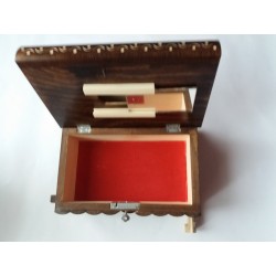 Questa scatola è interamente in legno (più spesso acero o faggio), interamente realizzata a mano e scolpita a mano da un talentuoso handcrafter. È laccato per avere un aspetto lucido, liscio e gradevole e per un uso a lunga durata.