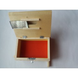Ora puoi vedere quel pezzo del lato della scatola, che devi far scivolare verso di te, per estrarlo. Lo fai scorrere dal centro (non dal bordo della scatola) Puoi vedere sull'immagine che il taglio non è abbastanza sul bordo della scatola segreta.