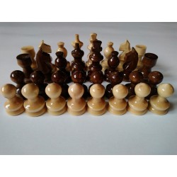 Šaha figūras ir no lazdas koka. Viņiem visiem ir 2 cm diametrs pie pamatnes. Karalis ir 5 cm augsts. Tie ir lakoti, lai tiem būtu spīdīgs, spilgts un gluds izskats!