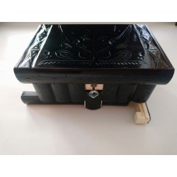 Koka, ar rokām grebts un lakots izstrādājums.