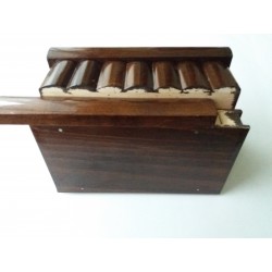 Deze doos is volledig van hout (meestal esdoorn of beukenhout), en volledig handgemaakt en handgesneden door een getalenteerde handwerker. Het is gelakt voor een glanzend, soepel en mooi uiterlijk en voor langdurig gebruik.