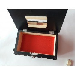 Deze doos is volledig van hout (meestal esdoorn of beukenhout), en volledig handgemaakt en handgesneden door een getalenteerde handwerker. Het is gelakt voor een glanzend, soepel en mooi uiterlijk en voor langdurig gebruik.