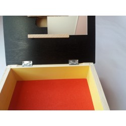 Deze doos is volledig van hout (meestal esdoorn of beukenhout), en volledig handgemaakt en handgesneden door een getalenteerde handwerker. Het is gelakt voor een glanzend, soepel en mooi uiterlijk en voor langdurig gebruik.