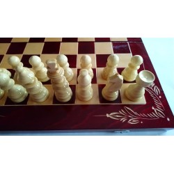 Jag presenterar dig en mycket prisvärd, helt ny, bra schacksats, som är helt handgjord, handskuren, handgjord. I priset ingår chessboxen och 32pieces, 30 backgammon piece, som passar in i lådan. Schackbiten är från hasselträ. De har alla 3,2 cm diameter vid basen. Bonden är 4,6 cm lång och kungen är 9 cm lång. Chesspiecesna är inte viktade !!! Brädet är 44x44 cm. Styckena är från hassel, och schackkartongens stycke är från bokträ. De är båda stora träd för en trevlig schack. Interiören är utan hölje. Schackbrädet är från bokträ, och har en mycket speciell traditionell blommahandskarving i alla 4 hörn !!! Det gör det så speciellt och annorlunda! För att göra det mer intressant och värdefullt gjorde vi också backgammon spelet inuti schacket. Många människor älskar backgammon. Vem är inte så bra på schack, det är verkligen bra på backgammon! För ännu roligare, om du vrider chessboxen på andra sidan, istället för schack, med backgammonbitarna kan du spela checkers eller drafts! Alla i familjen kan spela vad de gillar :) I grund och botten kommer du att ha 3 spel i 1, alla handgjorda, allt från trä, direkt från producenten! Det är handgjorda, så var god och acceptera mindre avvikelser! Det kan vara en bra present, prefekten väljer att ditt barn ska ta det till skolan, till sina vänner att leka med det. Schack är viktigt för barnen och allas goda intellektuella utveckling.