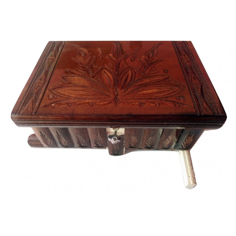 Denne boksen er helt av tre (oftest lønn eller bøkre), og helt håndlaget og håndskåret av en talentfull håndverkere. Den er lakkert for å ha et skinnende, glatt og fint aspekt, og for langvarig bruk.