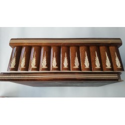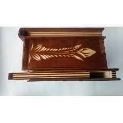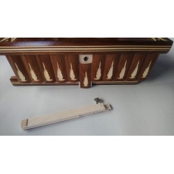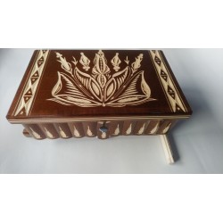 To pudełko jest w całości wykonane z drewna (najczęściej klonowego lub bukowego) i w całości ręcznie i ręcznie rzeźbione przez utalentowanego rzemieślnika. Jest lakierowany, aby uzyskać lśniący, gładki i przyjemny wygląd oraz zapewnić długotrwałe użytkowanie.