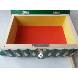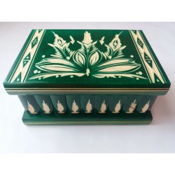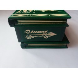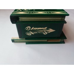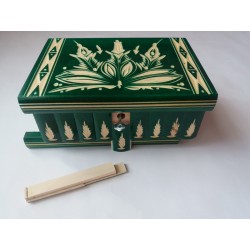 To pudełko jest w całości wykonane z drewna (najczęściej drewna klonowego lub bukowego) i w całości wykonane ręcznie i ręcznie rzeźbione przez utalentowanego rzemieślnika. Jest lakierowany, aby uzyskać błyszczący, gładki i ładny wygląd oraz zapewnić długotrwałe użytkowanie.