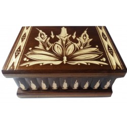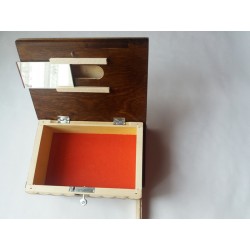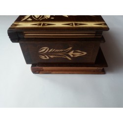 Esta caixa é inteiramente de madeira (na maioria das vezes madeira de bordo ou faia) e inteiramente feita à mão e esculpida por um artesão talentoso. É lacado para ter um aspecto brilhante, liso e agradável, e para uma utilização duradoura.