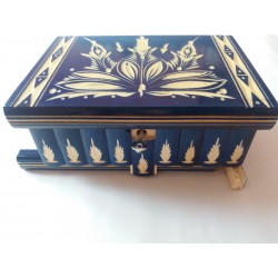 Esta caixa é inteiramente de madeira (na maioria das vezes madeira de bordo ou faia) e inteiramente feita à mão e esculpida por um artesão talentoso. É lacado para ter um aspecto brilhante, liso e agradável, e para uma utilização duradoura.