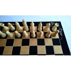 Te originalne ročno izdelane, ročno izrezljane šahovske figure imajo klasičen dizajn! Cena je s šahovnico! Šahovske figure niso obtežene!!! Cena je z ročno izdelano šahovnico iz bukovega lesa, ki je velikosti 50x50cm in kvadrata 5x5 cm. Šahovnica je v notranjosti brez ohišja! Šahovske figure so iz lešnikovega lesa in ročno izdelane. Vsi imajo pri dnu premer 3,2. Kmet je visok 5,8 cm, kralj pa 9,2 cm. Lakirani so za sijoč, svetel in gladek videz! Šahovnica je iz bukovega lesa in ima v vseh 4 vogalih prav posebno tradicionalno ročno izrezljano rožo!!! Zaradi tega je tako poseben in drugačen! Da bi bilo še bolj zanimivo in dragoceno, smo igro backgammon naredili tudi znotraj šaha. Veliko ljudi obožuje backgammon. Kdor ni tako dober v šahu, je zagotovo odličen v backgammonu! Za še več zabave, če šahovnico obrnete na drugo stran, lahko namesto šaha s figurami za backgammon igrate damo ali žogico! Vsak v družini lahko igra, kar hoče :) V bistvu boste imeli 3 igre v 1, vse ročno izdelane, vse iz lesa, neposredno od proizvajalca! In predvsem je po zelo ugodni ceni!!! Je ročno izdelan, ročno izrezljan, nizka cena, velik, lep, iz lesa je, 6 trenutnih razlogov za nakup!!! Ta artikel je v celoti ročno izdelan, zato sprejmete manjša odstopanja.