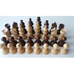 Priset gäller för en uppsättning schackbitar, 16 bruna och 16 naturliga laquerade trästycken (2x16 delar).